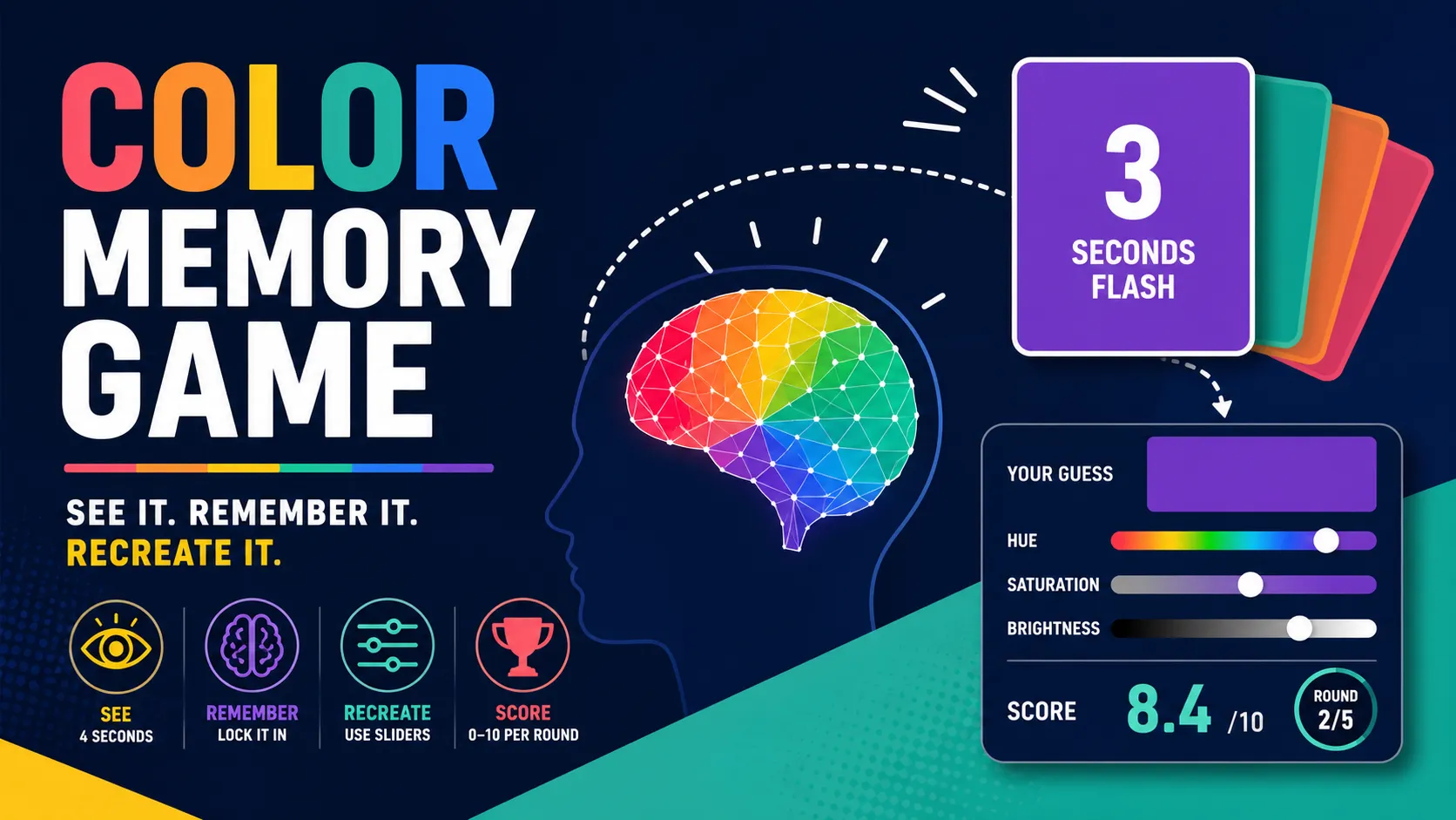 A single vibrant color fills your screen. You have three or four seconds to burn it into your brain. Then it vanishes forever. All that’s left? Three innocent sliders and your shaky memory. Color Memory Game is the brutally honest test of whether your eyes actually remember what they see.