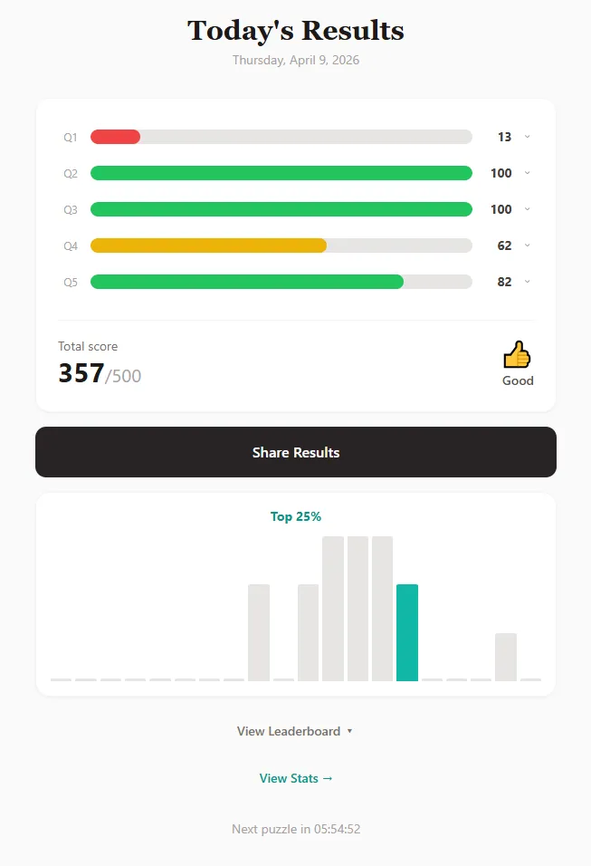 The challenge is brutally simple: get close. Not exact, not perfect—just closer than everyone else. Every answer reveals how far off you were, along with an explanation and a source, turning each round into both a game and a learning moment. It’s where curiosity meets competition, and your gut instinct gets put on trial.