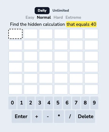 Mathler flips the classic guessing formula on its head. Instead of solving for a result, you already know it. Your challenge is to reverse-engineer the exact equation that produces that number. Every guess brings you closer—not just through numbers, but through structure, logic, and precision.